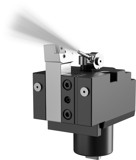 需要が高まる自動化・省人化で課題となるのがワークへの切粉巻き付きや切粉除去による機械停止。そこで、独自技術を応用し、複合旋盤での外径旋削加工時の切屑対策に最適なクーラント増圧ツールを開発した。